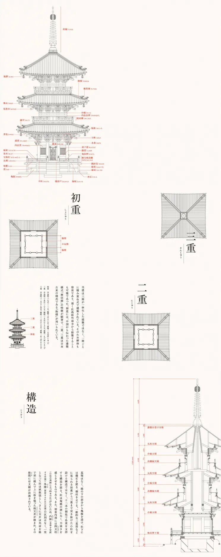 書中使用精細的線圖和文字,用最簡潔的方式讓讀者能夠純粹地欣賞寶塔的結(jié)構(gòu)之美。