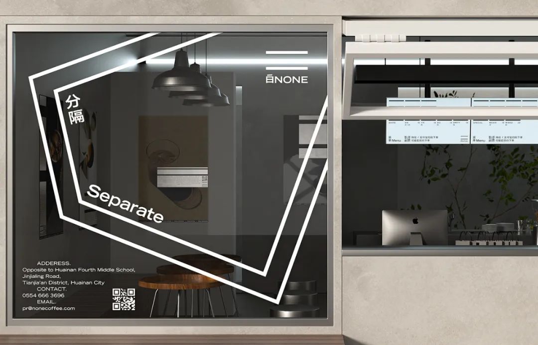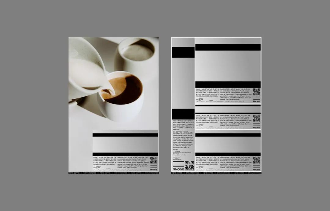 白咖啡,“NONE”也是"NO ONE"。我們位于淮南四中對面。我們以一條馬路所帶來的分隔為概念:一條馬路隔開的不僅是人和人,還是不同的時間、不同的生活、不同的感受。