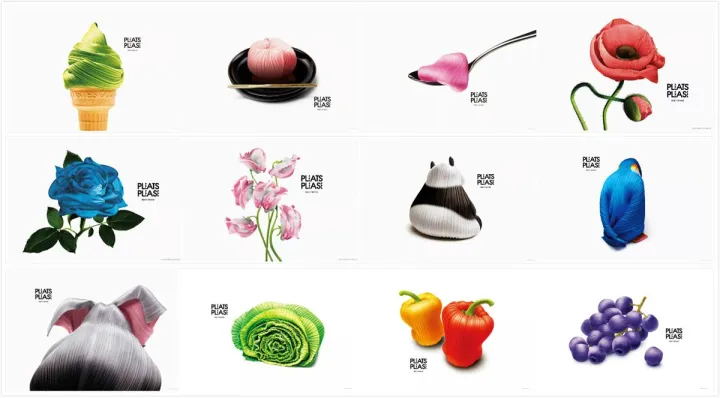 驚不驚人?佐藤卓形容這種面料有如「顏料」或「黏土」一般,是一種可塑性極強、藏有無限可能性的素材。基于這種可塑性,便有了之后一系列將面料塑造成各種形象的設計。例如花、動物、食物等,每次設定不同主題,制作不同形象。
