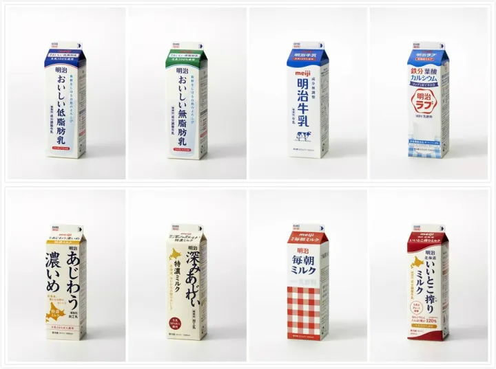 所以明治牛奶盒上盡可能維持了“沒有加工、原汁原味”的設計感,將商品訴求直接印上了牛奶盒,如此大膽的設計手法據說當時在日本設計界引起巨大反響,更是讓明治牛奶成為了明治品牌的代表性商品。據說,此次更新包裝以后,使其雄踞銷售冠軍10年。